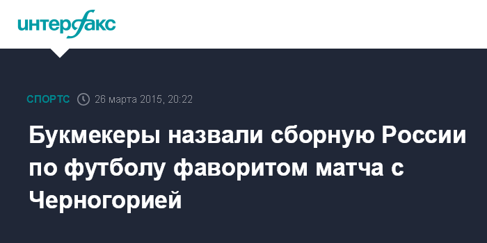 Москва. 26 марта. INTERFAX.RU - Согласно котировкам, опубликованным британской букмекерской конторой William Hill, сборная России по футболу является фаворитом отборочного матча чемпионата Европы-2016 против национальной команды Черногории.