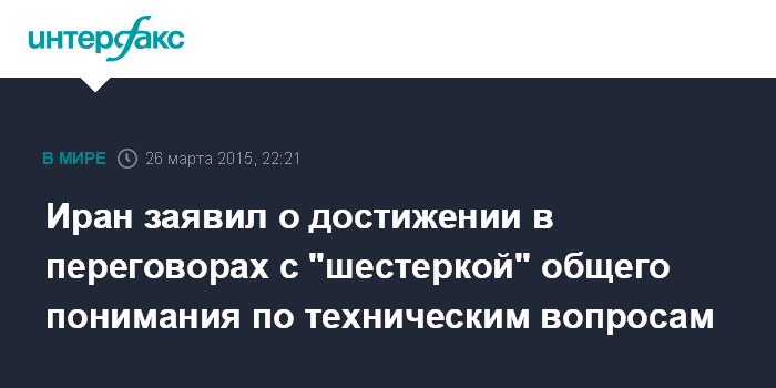 Москва. 26 марта. INTERFAX.RU - Представители Ирана и "шестерки" международных посредников пришли к общему пониманию по техническим вопросам в ходе переговоров по иранскому ядерному досье, сообщают иранские СМИ в четверг со ссылкой на главу организации по атомной энергии Ирана Али Акбара Салехи.