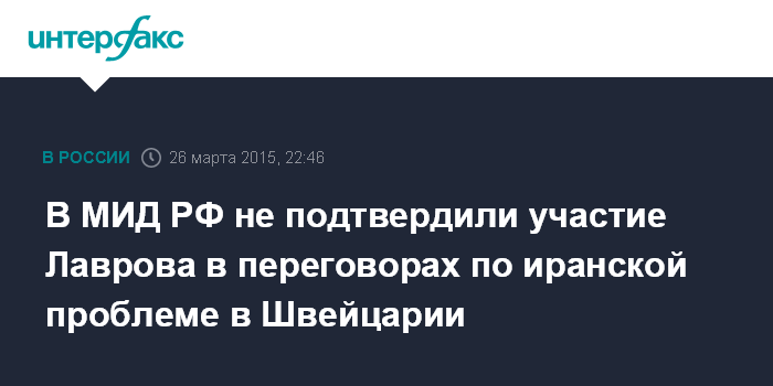 В МИД РФ не подтвердили участие Лаврова в переговорах по иранской проблеме в Швейцарии