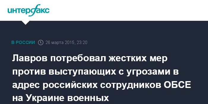 Лавров потребовал жестких мер против выступающих с угрозами в адрес российских сотрудников ОБСЕ на Украине военных
