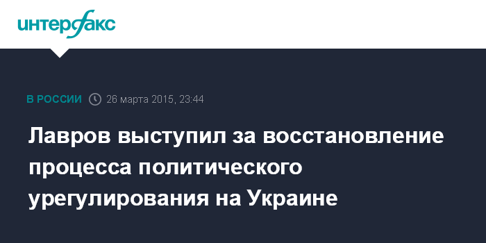 Москва. 26 марта. INTERFAX.RU - Процесс политического урегулирования на Украине необходимо восстановить, но официальный Киев пытается затормозить движение, направленное на разрешение ситуации, заявил глава МИД РФ Сергей Лавров.