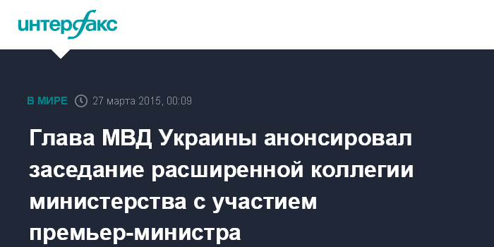 Москва. 27 марта. INTERFAX.RU - Глава МВД Украины Арсен Аваков сообщил о заседании расширенной коллегии МВД с участием премьер-министра, где могут быть приняты "некоторые решения".