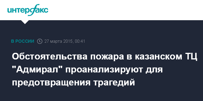 Обстоятельства пожара в казанском ТЦ "Адмирал" проанализируют для предотвращения трагедий