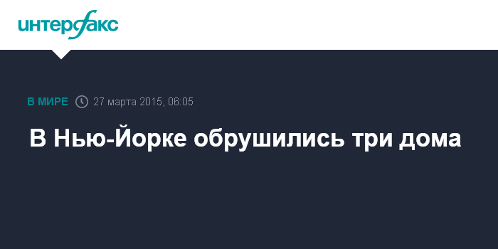 Москва. 27 марта. INTERFAX.RU - На Манхэттене обрушились три дома, сообщают местные СМИ, ссылаясь на заявления пожарных и спасателей Нью-Йорка.