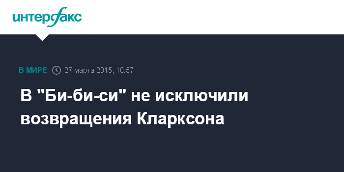 Москва. 27 марта. INTERFAX.RU - Креативный директор "Би-би-си" Алан Йентоб в эфире передачи Newsnight заявил, что не исключает возвращения уволенного ведущего Top Gear Джереми Кларксона на работу в корпорацию, сообщает BBC News.