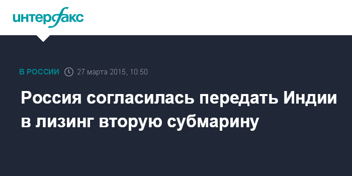 Россия согласилась передать Индии в лизинг вторую субмарину
