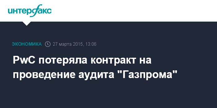 Москва. 27 марта. INTERFAX.RU – Глобальная фирма PricewaterhouseCoopers (PwC), два десятилетия бывшая бессменным аудитором "Газпрома", потеряла свой контракт с монополией.