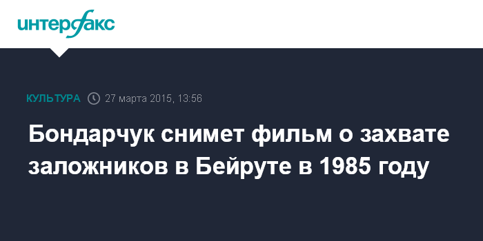 Москва. 27 марта. INTERFAX.RU - Федор Бондарчук снимет фильм о захвате советских заложников в Бейруте в 1985 году.