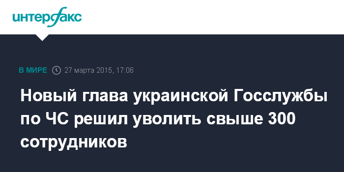 Москва. 27 марта. INTERFAX.RU - Назначенный временно исполняющим обязанности главы Государственной службы Украины по чрезвычайным ситуациям (ГСЧС) Зорян Шкиряк заявил, что подписал более 300 представлений на увольнение сотрудников ГСЧС.