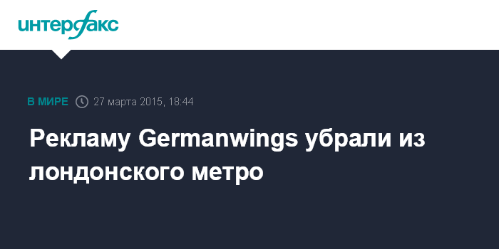 Москва. 27 марта. INTERFAX.RU - Рекламные плакаты лоукостера Germanwings, самолет которого разбился 24 марта во французских Альпах, сняты со стен лондонского метро, передает BBC News.