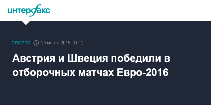 Москва. 28 марта. INTERFAX.RU - Соперники сборной России по футболу по группе G в матчах отборочного турнира Чемпионата Европы 2016 года Австрия и Швеция обыграли своих соперников в матчах, завершившихся в ночь на субботу.