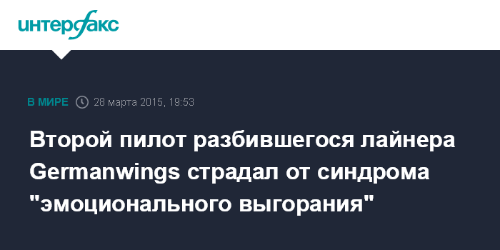 Второй пилот разбившегося лайнера Germanwings страдал от синдрома "эмоционального выгорания"