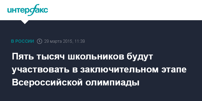Москва. 29 марта. INTERFAX.RU - Пять тысяч школьников примут участие в заключительном этапе Всероссийской олимпиады, которая с 28 марта проходит в различных городах России, сообщает Минобрнауки.