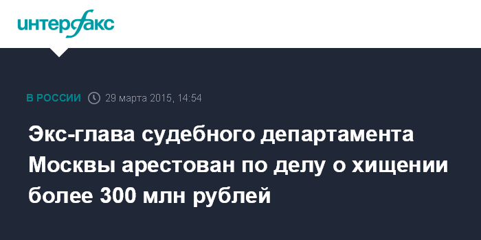 Экс-глава судебного департамента Москвы арестован по делу о хищении более 300 млн рублей