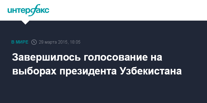 Москва. 29 марта. INTERFAX.RU - В Узбекистане в 20:00 по местному времени (18:00 по Москве) закрылись избирательные участки, где проходило голосование по выборам президента республики, передает корреспондент "Интерфакса".