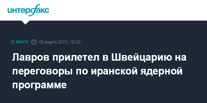 Москва. 29 марта. INTERFAX.RU - Глава МИД России Сергей Лавров прибыл в воскресенье в Швейцарию на переговоры по иранской ядерной программе.