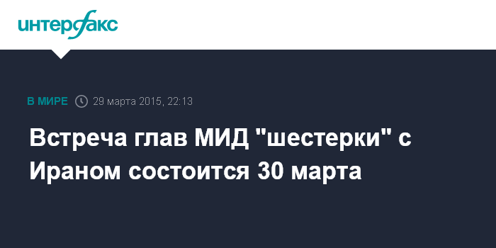 Встреча глав МИД "шестерки" с Ираном состоится 30 марта