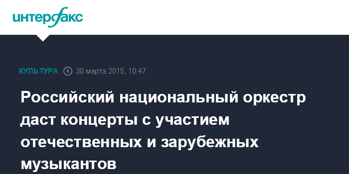 Москва. 30 марта. INTERFAX.RU - Известные российские и зарубежные музыканты выступят в апреле на концертных площадках Москвы вместе с Российским национальным оркестром, художественным руководителем которого является народный артист России Михаил Плетнев.