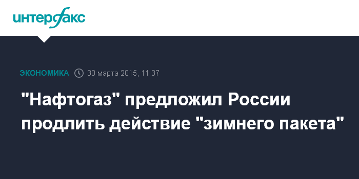 Москва. 30 марта. INTERFAX.RU – "Нафтогаз Украины" поддержал предложение Еврокомиссии о продлении действия так называемого "зимнего пакета" (соглашение, достигнутое в ходе трехсторонних переговоров в Брюсселе 31 октября 2014 года), до конца следующего осенне-зимнего периода, говорится в пресс-релизе, опубликованном украинской компанией.