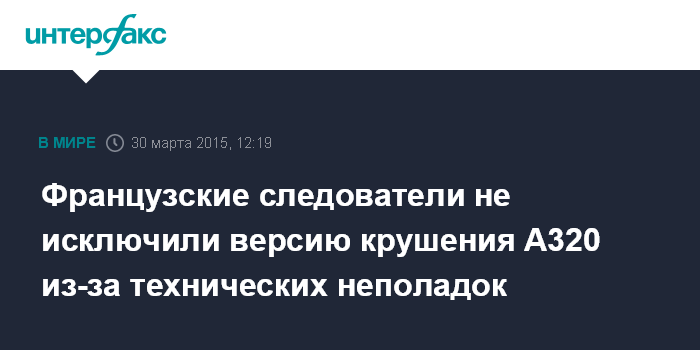 Москва. 30 марта. INTERFAX.RU - Французское следствие допускает версию, что авиакатастрофа лайнера А320 на юге Франции была вызвана техническими неполадками, заявил глава группы французских следователей Жан-Пьер Мишель в интервью телеканалу BFM TV.