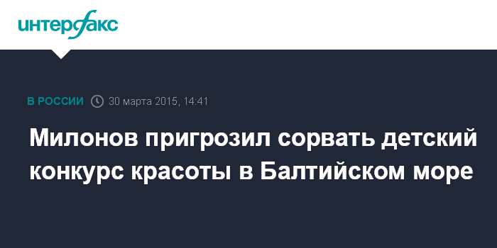 Москва. 30 марта. INTERFAX.RU - Депутат Законодательного собрания Санкт-Петербурга Виталий Милонов в понедельник прервал пресс-конференцию, посвященную участию российских детей в международных конкурсах красоты, и пригрозил сорвать проведение очередного такого мероприятия в нейтральных водах Балтийского моря.