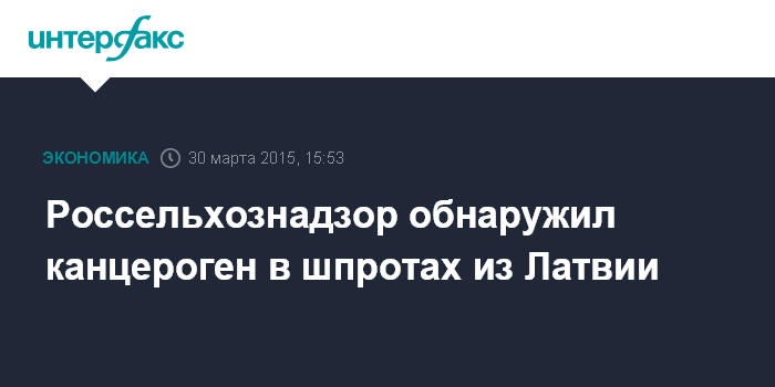 Москва. 30 марта. INTERFAX.RU – Россельхознадзор обнаружил в партии шпрот из Латвии канцерогенное вещество – бензапирен.