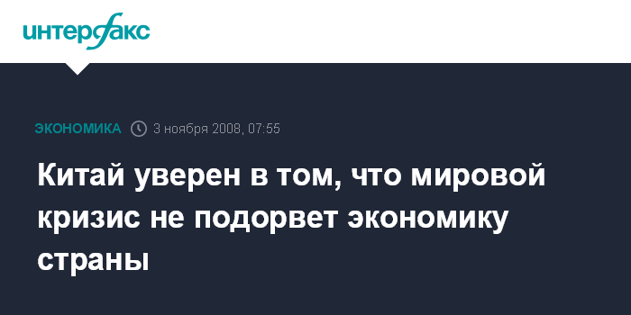 Китай уверен в том, что мировой кризис не подорвет экономику страны