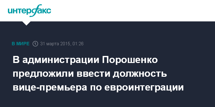 В администрации Порошенко предложили ввести должность вице-премьера по евроинтеграции