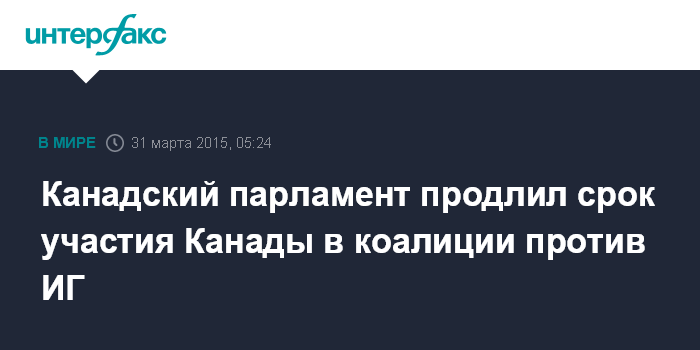 Москва. 31 марта. INTERFAX.RU - Палата общин канадского парламента 142 голосами против 129 одобрила предложение премьер-министра Стивена Харпера о продолжении участия Канады в международной коалиции против группировки "Исламское государство" (ИГ).