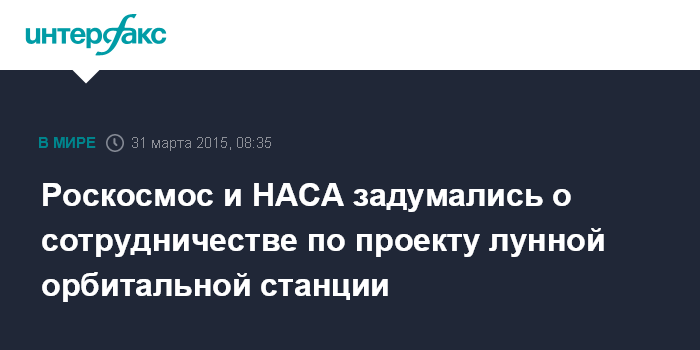 Москва. 31 марта. INTERFAX.RU - У Роскосмоса и НАСА нет планов создания совместной космической станции на околоземной орбите после 2024 года, однако подобные планы существуют по поводу лунной орбитальной станции, сообщил во вторник "Интерфаксу" источник, знакомый с ситуацией.
