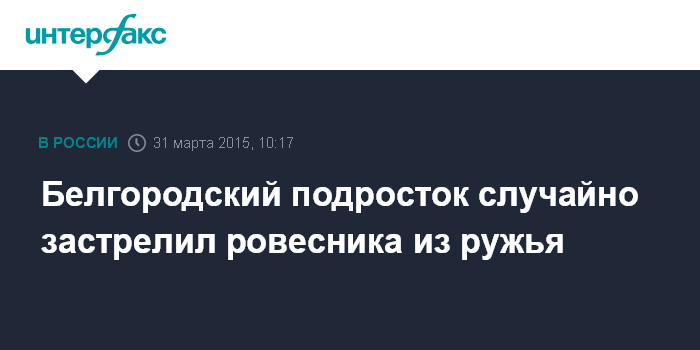 Москва. 31 марта. INTERFAX.RU - В Белгороде 17-летний подросток застрелил своего несовершеннолетнего друга из ружья, сообщает пресс-служба УМВД по региону.