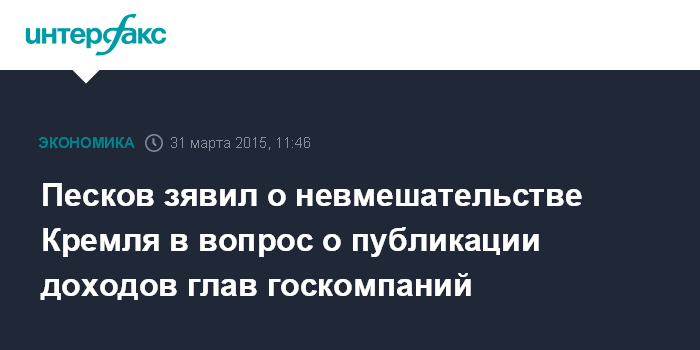 Песков зявил о невмешательстве Кремля в вопрос о публикации доходов глав госкомпаний