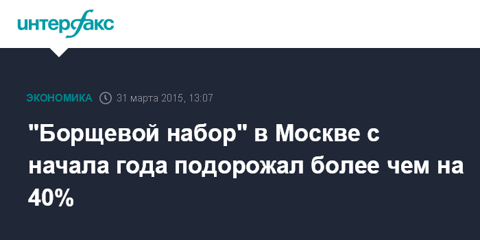 Москва. 31 марта. INTERFAX.RU - Стоимость так называемого "борщевого набора" существенно выросла в первом квартале текущего года, заявил во вторник глава департамента торговли и услуг столицы Алексей Немерюк.