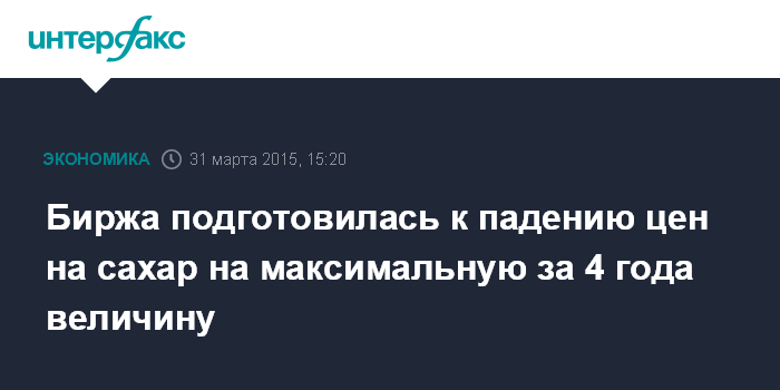 Биржа подготовилась к падению цен на сахар на максимальную за 4 года величину