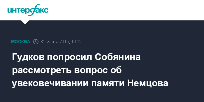 "В связи с вышеизложенным прошу вас дать поручение принять меры для предотвращения подобных конфликтных ситуаций в будущем, а также рассмотреть обращения граждан об увековечивании памяти Бориса Немцова и принять положительное решение по данному вопросу", - отмечается в запросе Гудкова на имя Собянина.