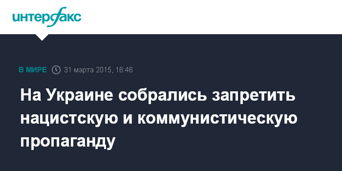 Москва. 31 марта. INTERFAX.RU - Правительство Украины подготовило законопроект о запрете нацистской и коммунистической идеологий, сообщил премьер-министр Арсений Яценюк на заседании кабмина во вторник в Киеве.