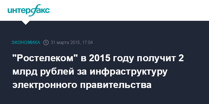 "Ростелеком" в 2015 году получит 2 млрд рублей за инфраструктуру электронного правительства
