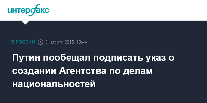 Как сообщалось, президент 13 марта поручил председателю правительства до 15 апреля представить предложения о создании Федерального агентства по делам национальностей.