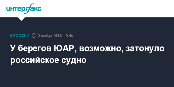Москва. 3 ноября. INTERFAX.RU - Около побережья ЮАР затонул траулер Diomed, возможно, это российское судно, сообщает в понедельник сайт "Морской Бюллетень".