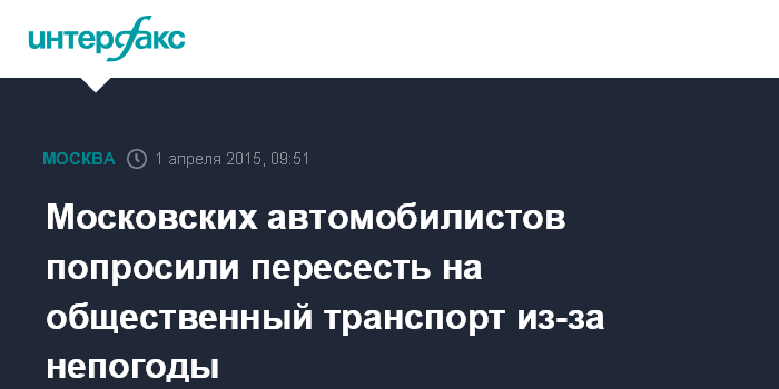 Москва. 1 апреля. INTERFAX.RU - Дорожная обстановка в Москве в среду будет осложнена из-за погодных условий, в связи с чем Департамент транспорта просит москвичей пользоваться общественным транспортом.