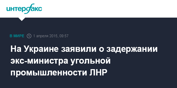 Москва. 31 марта. INTERFAX.RU - Службы безопасности Украины задержала в Луганской области "бывшего министра угольной промышленности" самопровозглашенной Луганской народной республики.