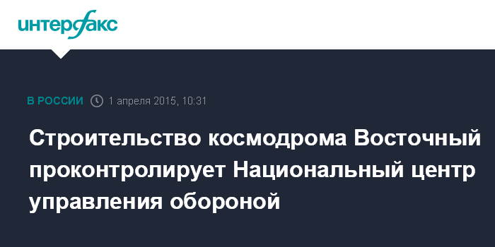 Москва. 1 апреля. INTERFAX.RU - Национальный центр управления обороной РФ займется контролем хода работ на строительстве космодрома Восточный (Амурская область), заявил в среду на совещании по строительству космодрома Восточный вице-премьер Дмитрий Рогозин.