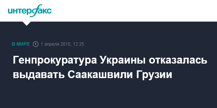 Москва. 1 апреля. INTERFAX.RU - Генеральная прокуратура Украины провела "экстрадиционную проверку" по запросу Главной прокуратуры Минюста Грузии о выдаче Михаила Саакашвили для привлечения к уголовной ответственности в этом государстве и отказала в запросе.