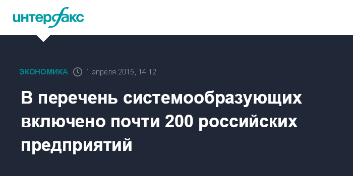 Москва. 1 апреля. INTERFAX.RU - Правительство подготовило список из 199 системообразующих предприятий, общая прибыль которых составляет 70% совокупного национального дохода, сообщил президент РФ Владимир Путин.