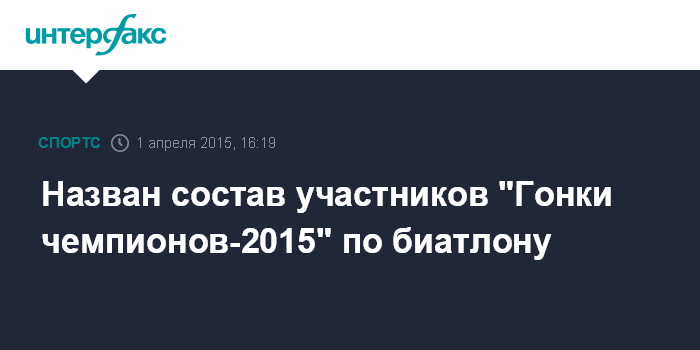 Москва. 1 апреля. INTERFAX.RU - Союз биатлонистов России (СБР) обнародовал состав участников традиционных шоу-соревнований по биатлону "Гонка чемпионов".