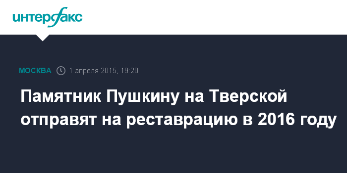 Памятник Пушкину на Тверской отправят на реставрацию в 2016 году
