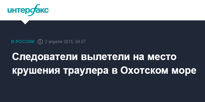Москва. 2 апреля. INTERFAX.RU - Следователи вылетели из Хабаровска к месту крушения траулера "Дальний Восток" в Охотском море.