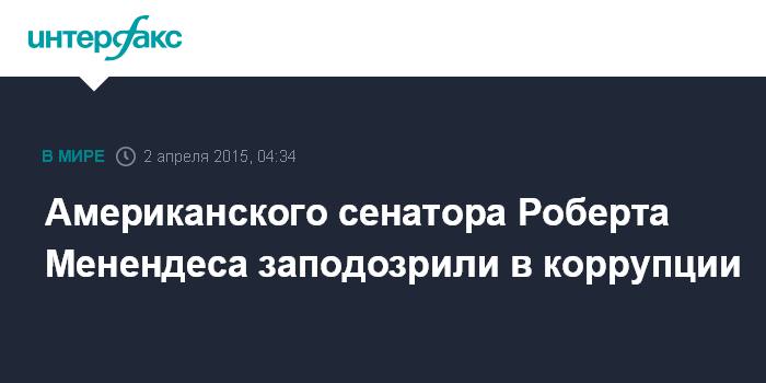 Москва. 2 апреля. INTERFAX.RU - Американский сенатор-демократ Роберт Менендес, возглавляющий Комитет по иностранным делам, попросил временной отставки с этой должности в связи с предъявленными ему обвинениями в коррупции, сообщили СМИ.