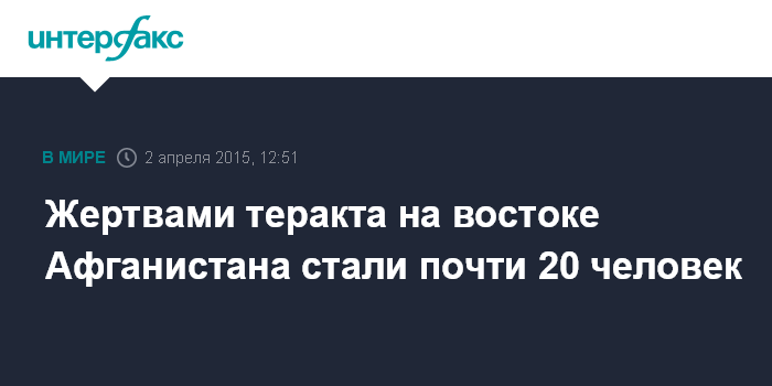 Москва. 2 апреля. INTERFAX.RU - Атака террориста-смертника привела к гибели 17 человек в провинции Хост в восточной части Афганистана, передает в четверг афганский телеканал "Толо".