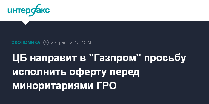 ЦБ направит в "Газпром" просьбу исполнить оферту перед миноритариями ГРО